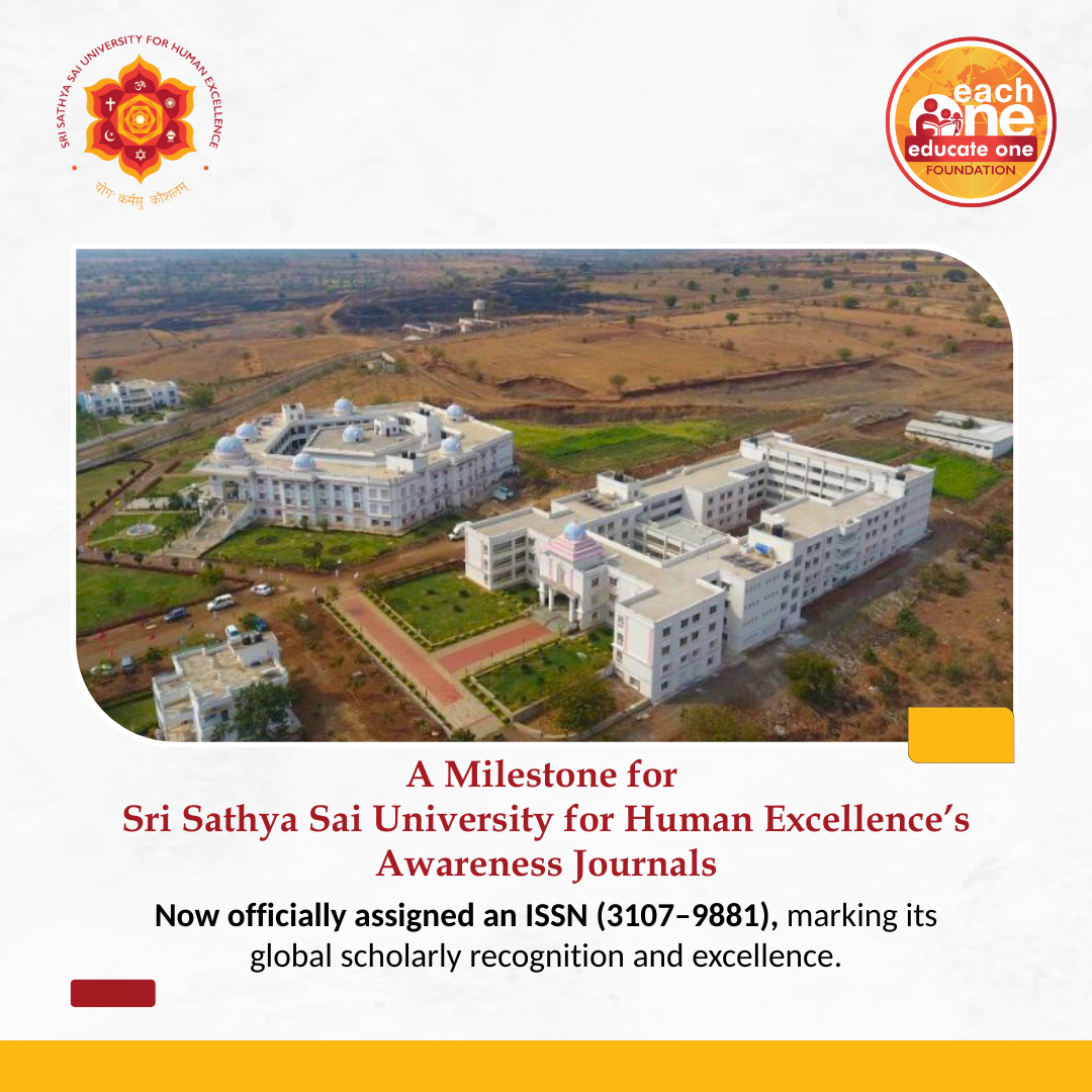 We are delighted to announce a landmark achievement for the Awareness Journals, the multidisciplinary, open-access research publication of Sri Sathya Sai University for Human Excellence (SSSUHE). Our journal has officially been assigned its International Standard Serial Number (ISSN: 3107-9881), a defining step that integrates us into the international scholarly community, enabling global indexing and elevating the visibility of our authors’ research. The Awareness Journal continues its mission to set new benchmarks in publishing excellence by being: - Truly Transdisciplinary: Publishing collaborative research across Pure Sciences, Applied Sciences & Technology, Arts & Humanities, and Business & Commerce. -100% Free & Equitable: No publication charges for authors, editors, or readers, reflecting SSSUHE’s commitment to inclusive knowledge-sharing. - Committed to Quality: Upholding rigorous peer review and editorial standards through the EditorialManager™ platform. We invite scholars worldwide to explore, contribute, and collaborate. Visit the Journal: https://lnkd.in/gcK_WXEP